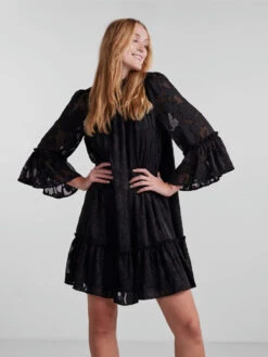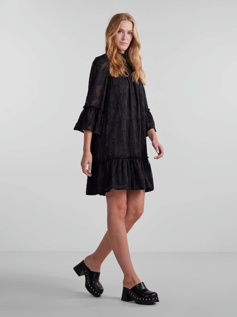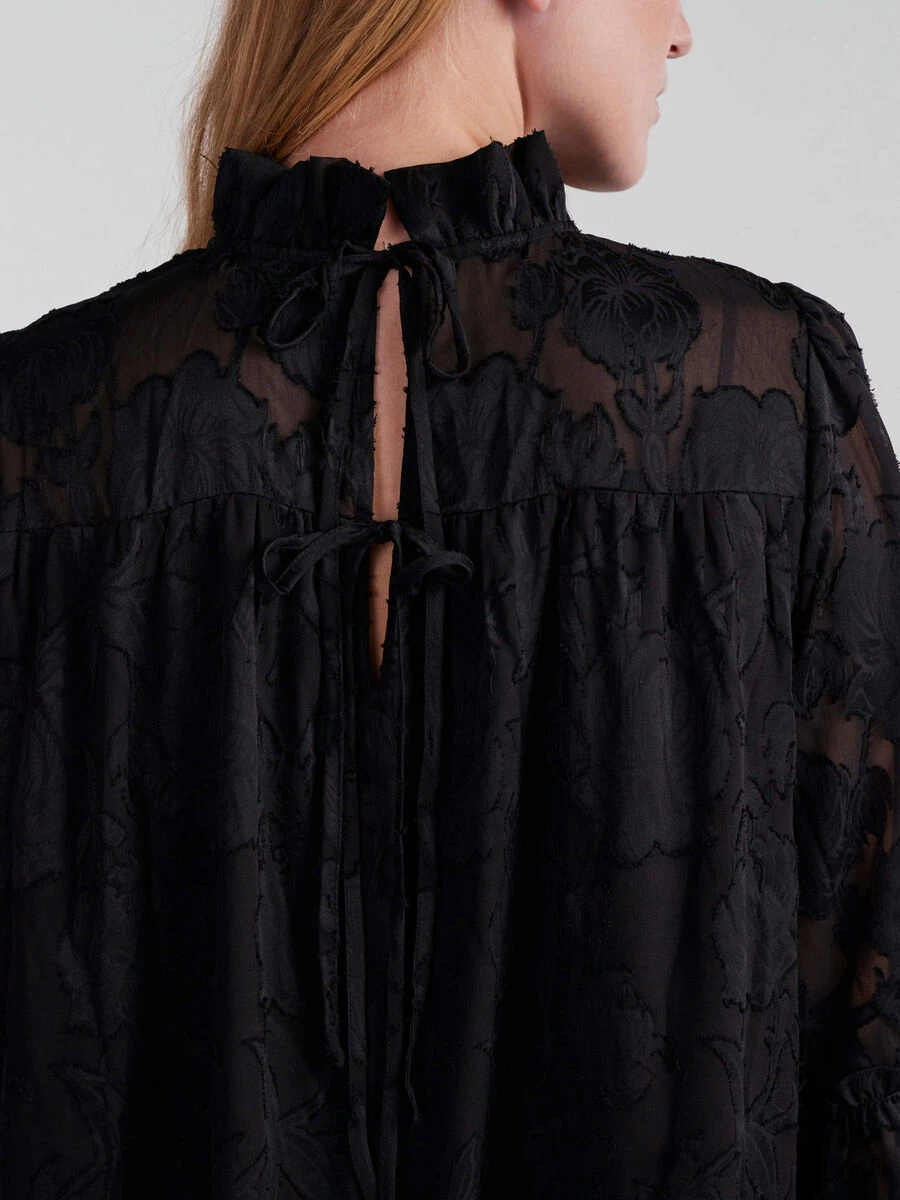 – Flared cuffs with frilled trim