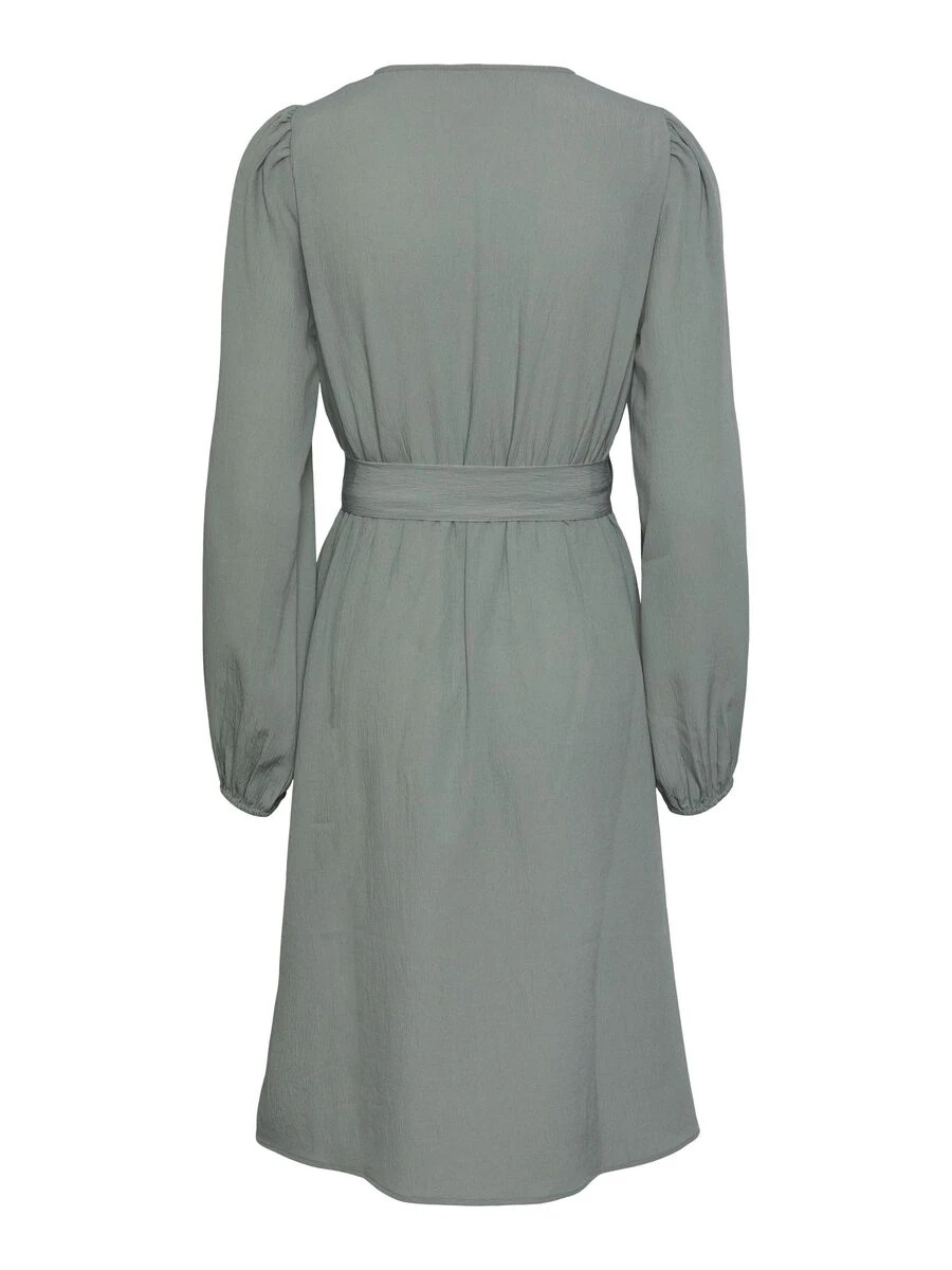 – Cutline at waist with tie belt