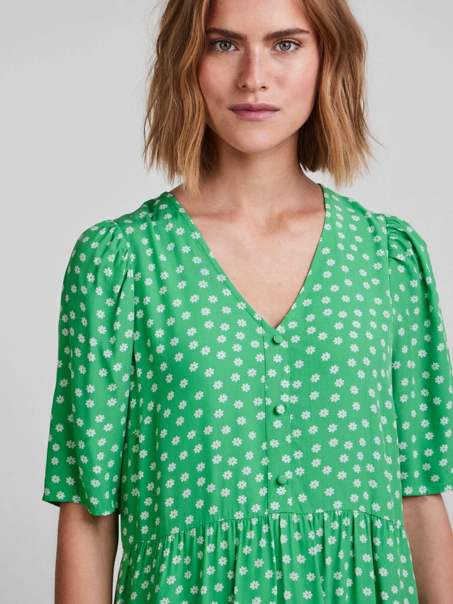 – Short flared sleeves